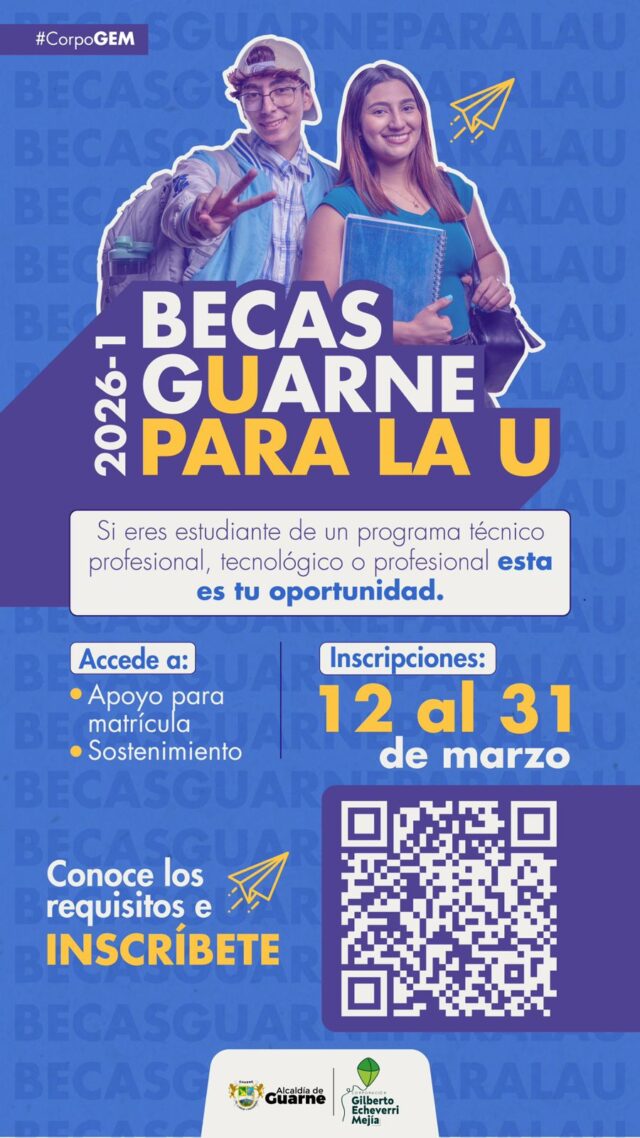 El Programa de becas Guarne para la U, surge de la alianza entre la Alcaldía de Guarne y la Corporación Gilberto Echeverri Mejía, para brindar becas, previo cumplimiento de requisitos, a la comunidad del Municipio de Guarne.